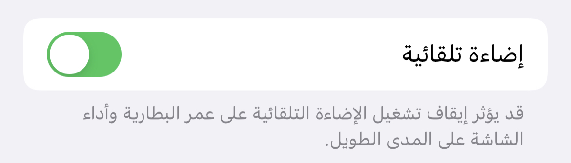 هذه الطريقة إيقاف السطوع التلقائي أو أرجعها كما هي في المصنع على iPhone حتى يتوفر من عمر البطارية. 1- الإعدادات 2- تسهيلات الاستخدام 3- الشاشة وحجم النص بالأسفل عند: (إضاءة تلقائية) https://www.maryamabnatimran.com/for...1&d=1640504766 أقفلها إذا تريد الإضاءة من تعديلك ولا تتغير. وإذا تريدها الإضاءة من المصنع، أقفلها وفعلها وهو نفس الاختيار عند (إضاءة تلقائية)، وهذا الأفضل حتى يتوفر من عمر البطارية ومع أن الإضاءة سوف تكون خفيفة ولكن تعود عينك عليها بعد المرور وقت. |