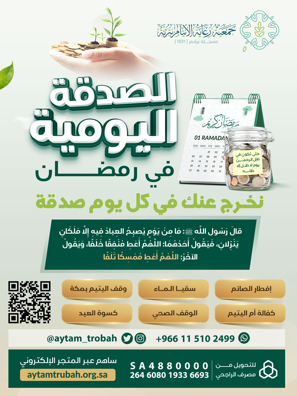مشروع: صدقتك اليومية في رمضان عتق من النار ودفع للبلاء والكرب