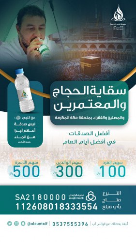 مشروع: اسق ضيوف الرحمن في مشعر عرفات ومكة المكرمة طوال عشر ذو الحجة