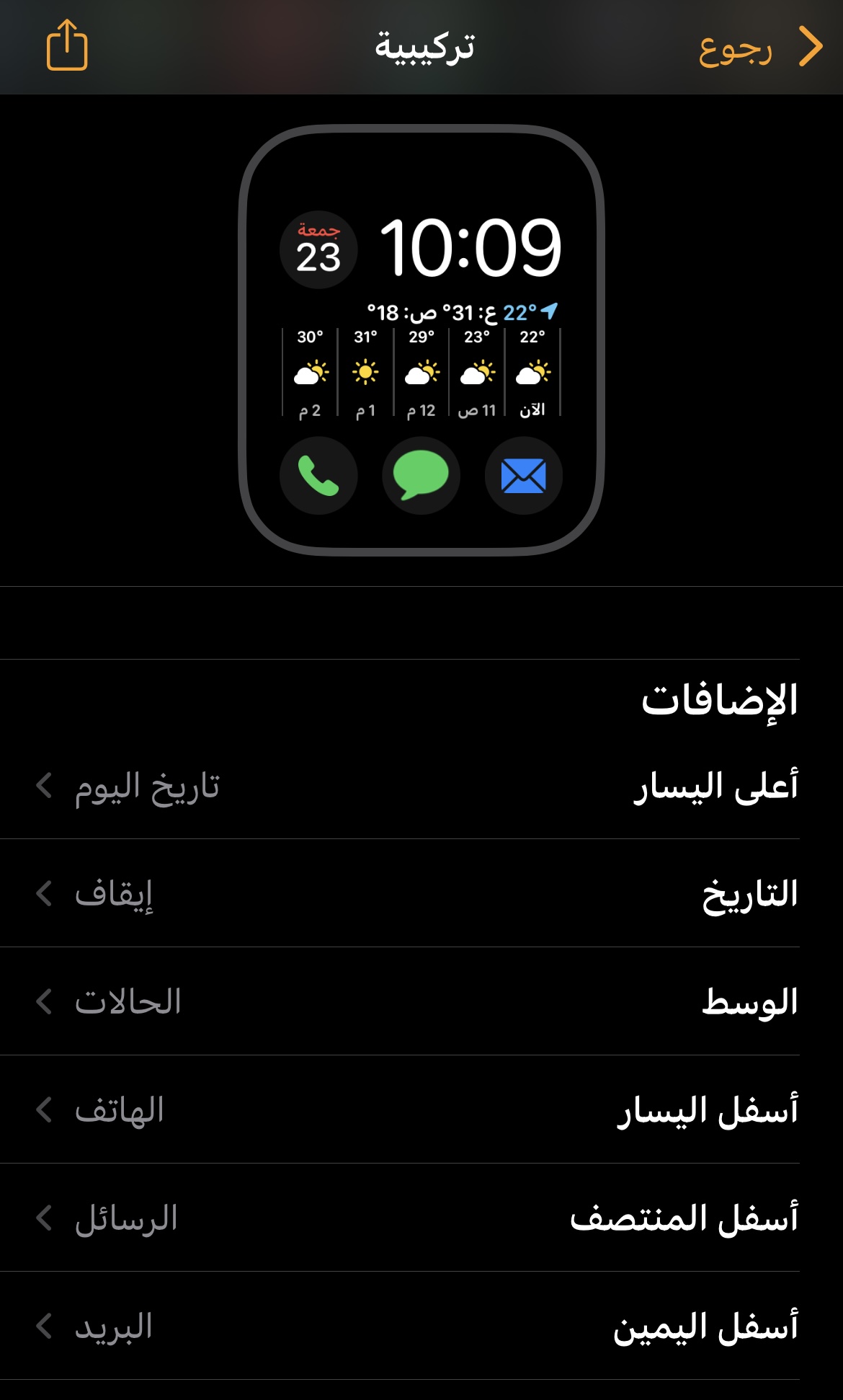 هذه الطريقة تجعل ساعة Apple أكثر نفعا وليس شكل ساعة فقط وهذا في التحديث الجديد. تختار الساعة على شكل: (تركيبة) وأعمل كما في الإضافات: https://www.maryamabnatimran.com/for...1&d=1663264415 |