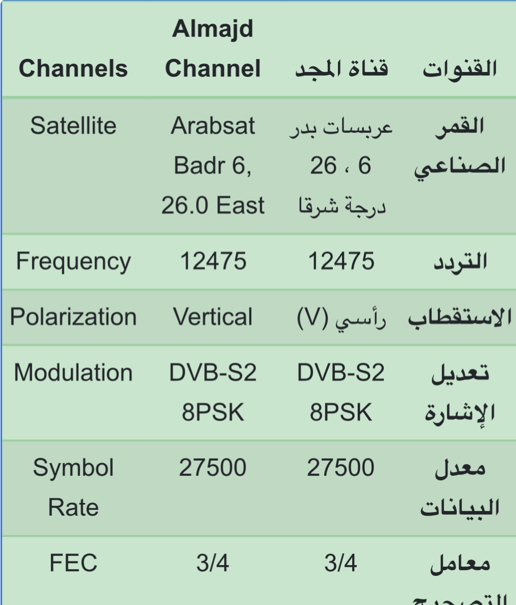 تردد الجديد لباقة قنوات المجد على عرب سات