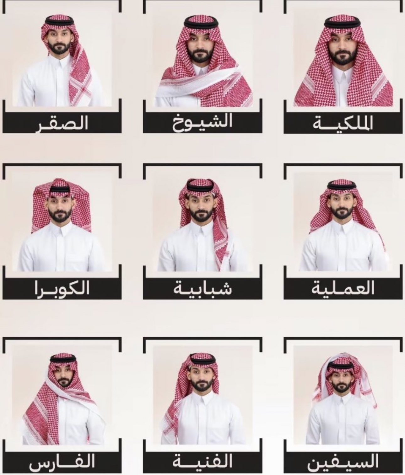 أسماء طريقة لبس الشماغ، كما في الصورة: https://www.maryamabnatimran.com/for...1&d=1718219756 |