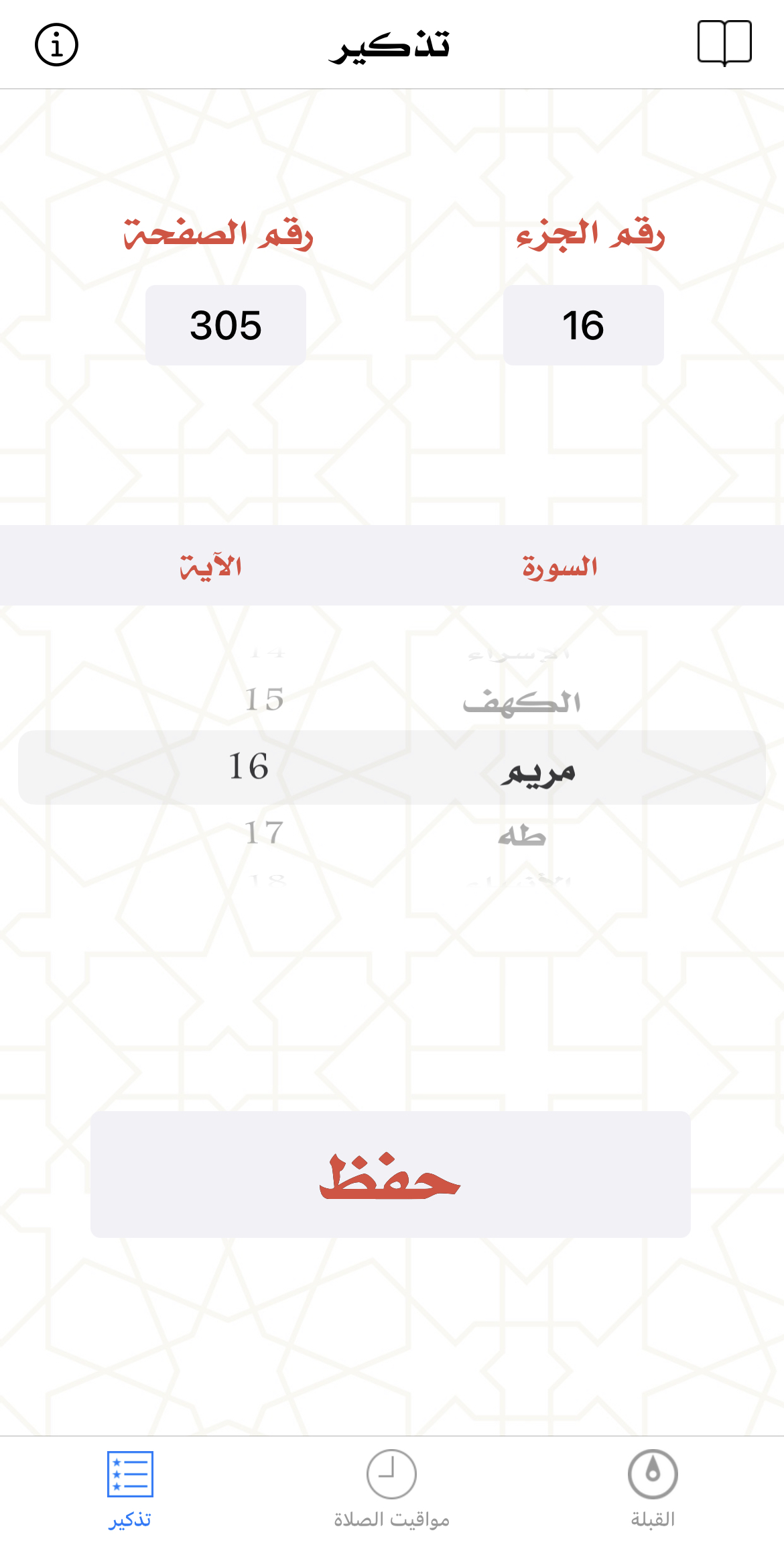 تطبيق "تذكير" يقوم بتخزين اسم السورة والآية ال iPhone