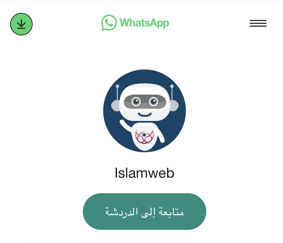 السلام عليكم ورحمة الله وبركاته هذه الخدمة WhatsApp فتاوى يقدمها موقع الشهير إسلام ويب. صورة: اضغط على الرابط يدخلك مباشرة على WhatsApp: https://wa.me/97450004564 |