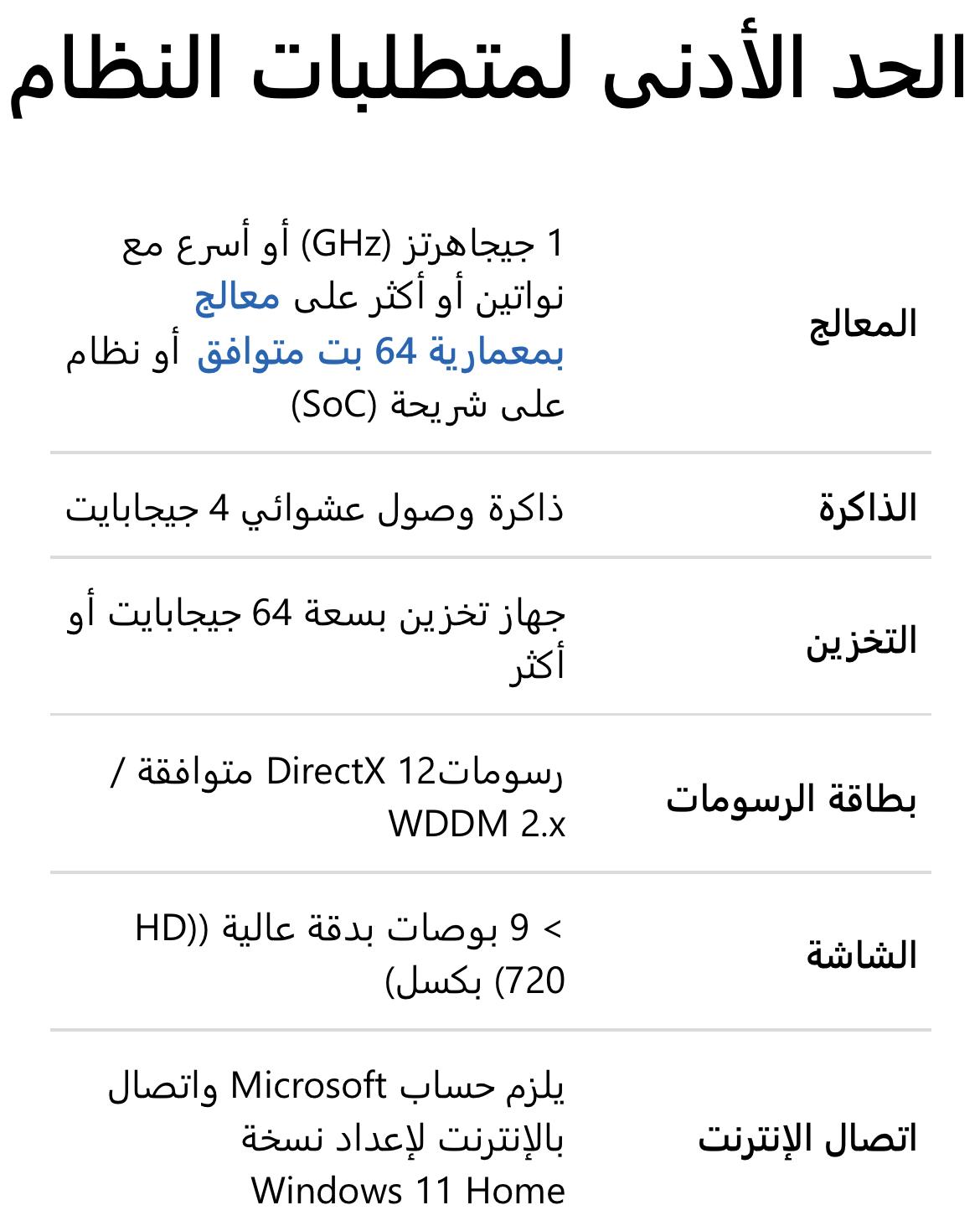 بالصورة الحد الأدنى لمتطلبات النظام Windows 11